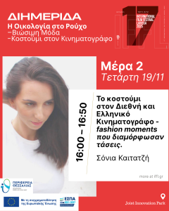 Ημέρα 2η 16:00 – 16:50 Το κοστούμι στον Διεθνή και Ελληνικό Κινηματογράφο – Fashion moments που διαμόρφωσαν τάσεις